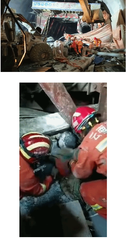 由于事故地点属中山地貌,地形起伏较大,地质松软、风化严重,隧道区隧道范围内中线高程 2276.2~1800.7m,最大高差约 475.5m,山体自然坡度 14°~31°,植被较发育,含水量较大,进口、出口均处于山前斜坡地带,发生次生灾害风险较高,给救援带来了较大困难。