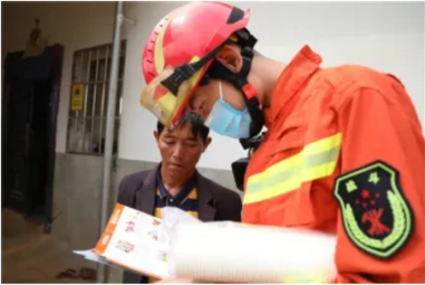 消防员进村入户开展“敲门宣传”,发放防火宣传手册,让村民认识到了火灾的危害,提高了消防安全意识。