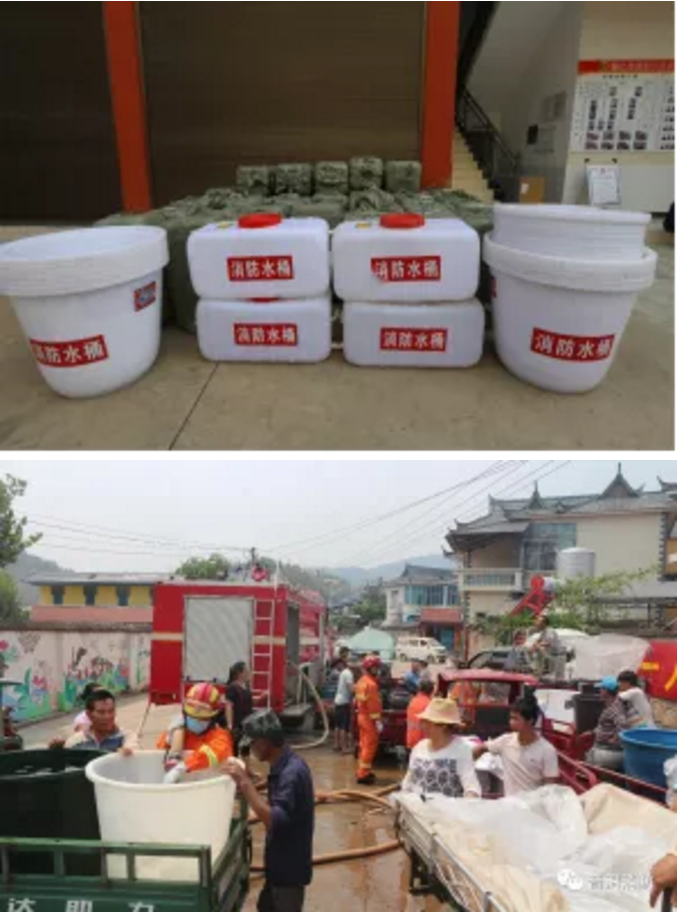 普洱市墨江县消防救援大队针对一些消防车无法行驶到达山区的情况,专门购置了255升的立式加厚储水桶45支、200升的卧式加厚塑料储水桶30支,发放给村民,在作用抗旱的同时,将来这些水桶还可以作为农村消防水桶继续使用。