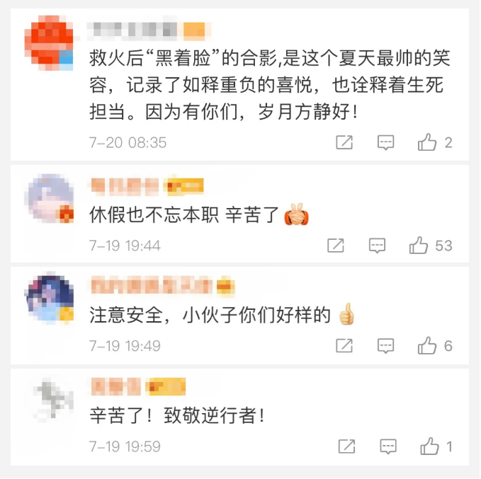 “这张救火后‘黑着脸’的合影 是这个夏天最帅的笑容”