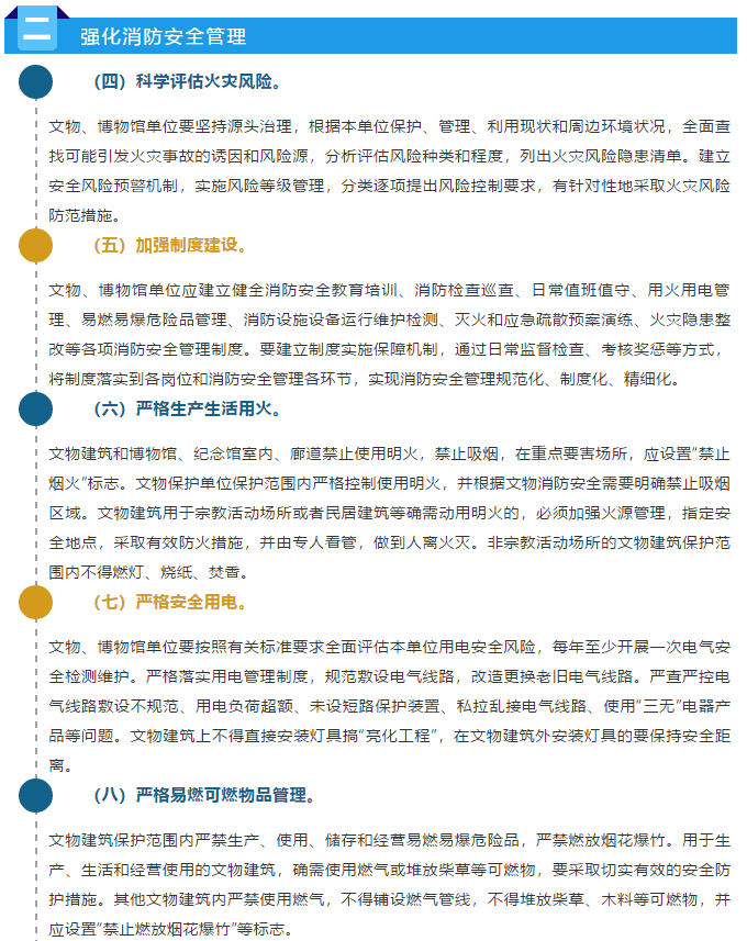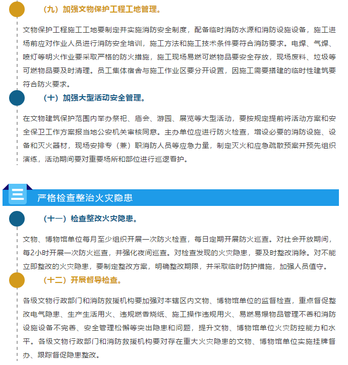 日前,国家文物局、应急管理部联合发布《关于进一步加强文物消防安全工作的指导意见》,共22条。