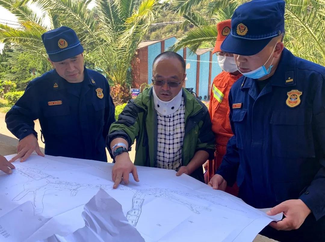 总队王岗副总队长和昆明支队赵俊政委带领前方指挥部对火场情况进行了全面细致的勘察,研究制定了“两线四点”的作战布局。